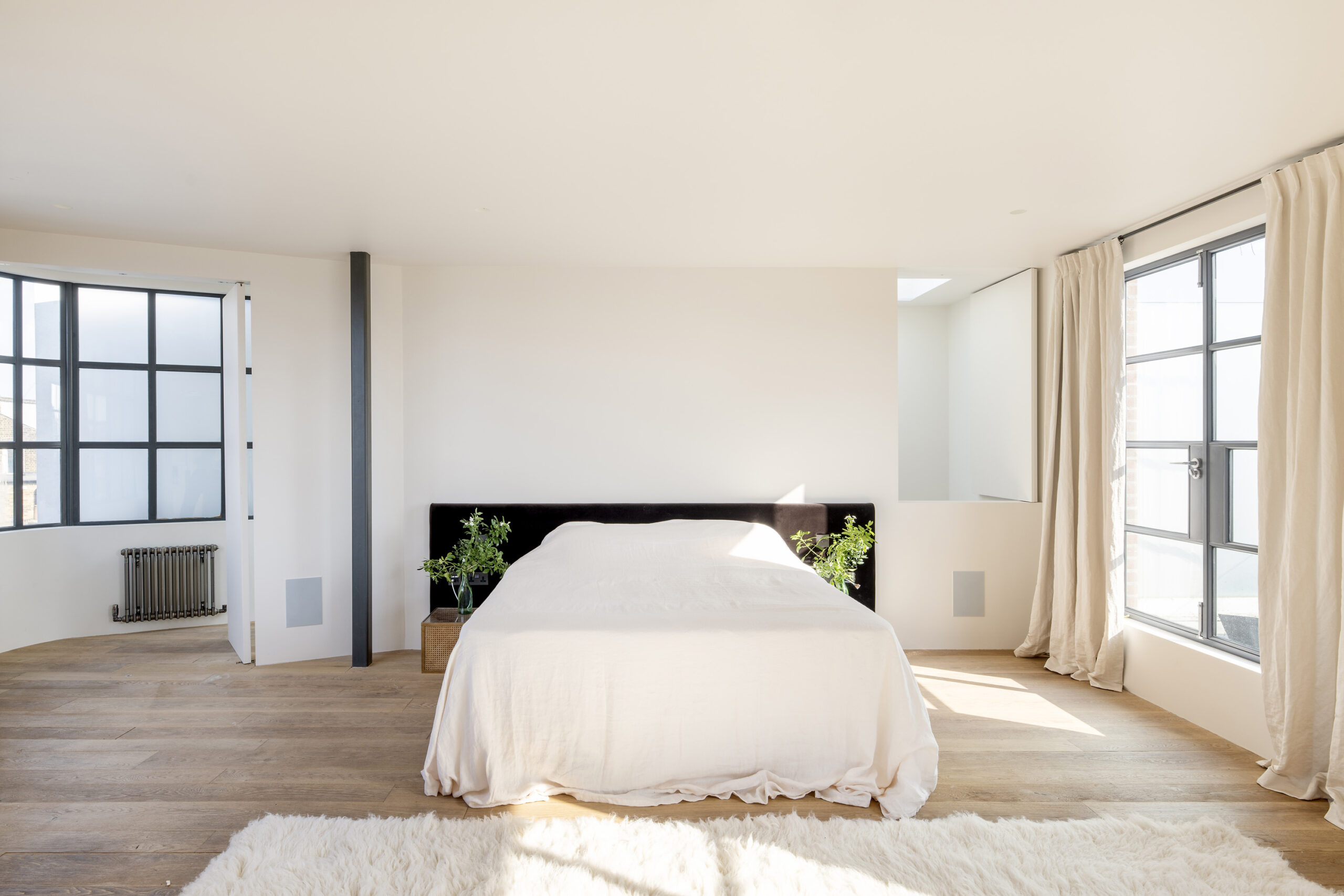 An unexpected find in Kensal Rise, this three-storey home sits back concealed beyond an electric gated entrance. Inside, steel beams and multi-panelled windows make a feature of its industrial heritage, working in harmony with modern design. A former warehouse building initially united by architects Michaelis Boyd, a more recent renovation by Powell Tuck Associates celebrates the staggering proportions found throughout.