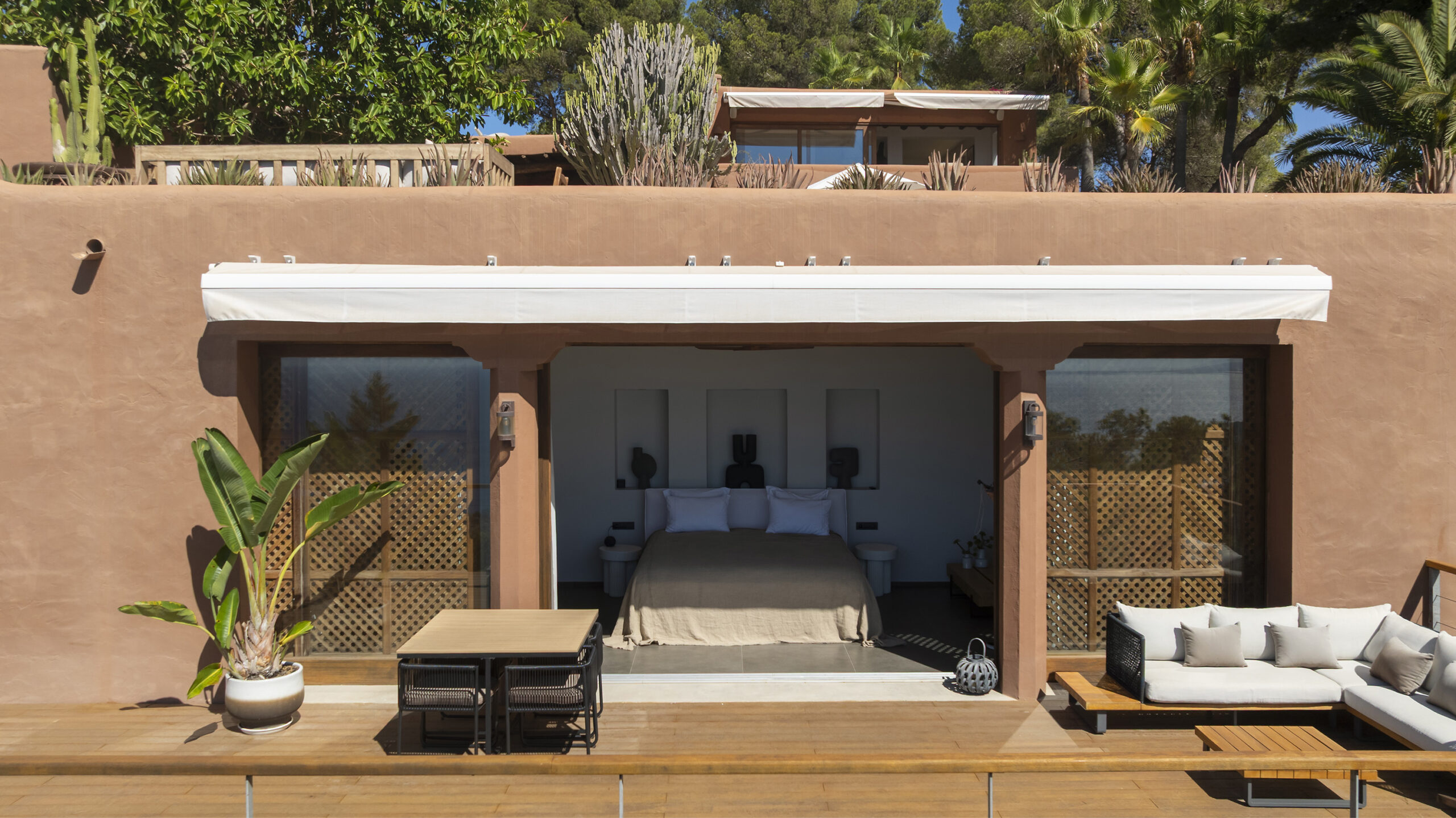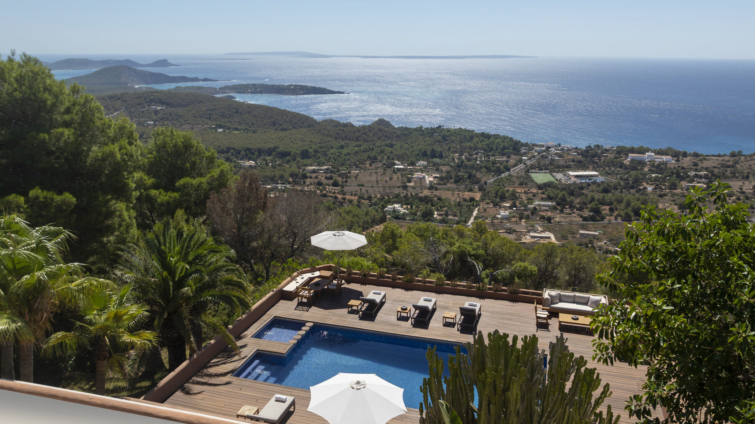 This island home gazes out across a dazzling 180-degree panorama of the sea, stretching all the way to Formentera.