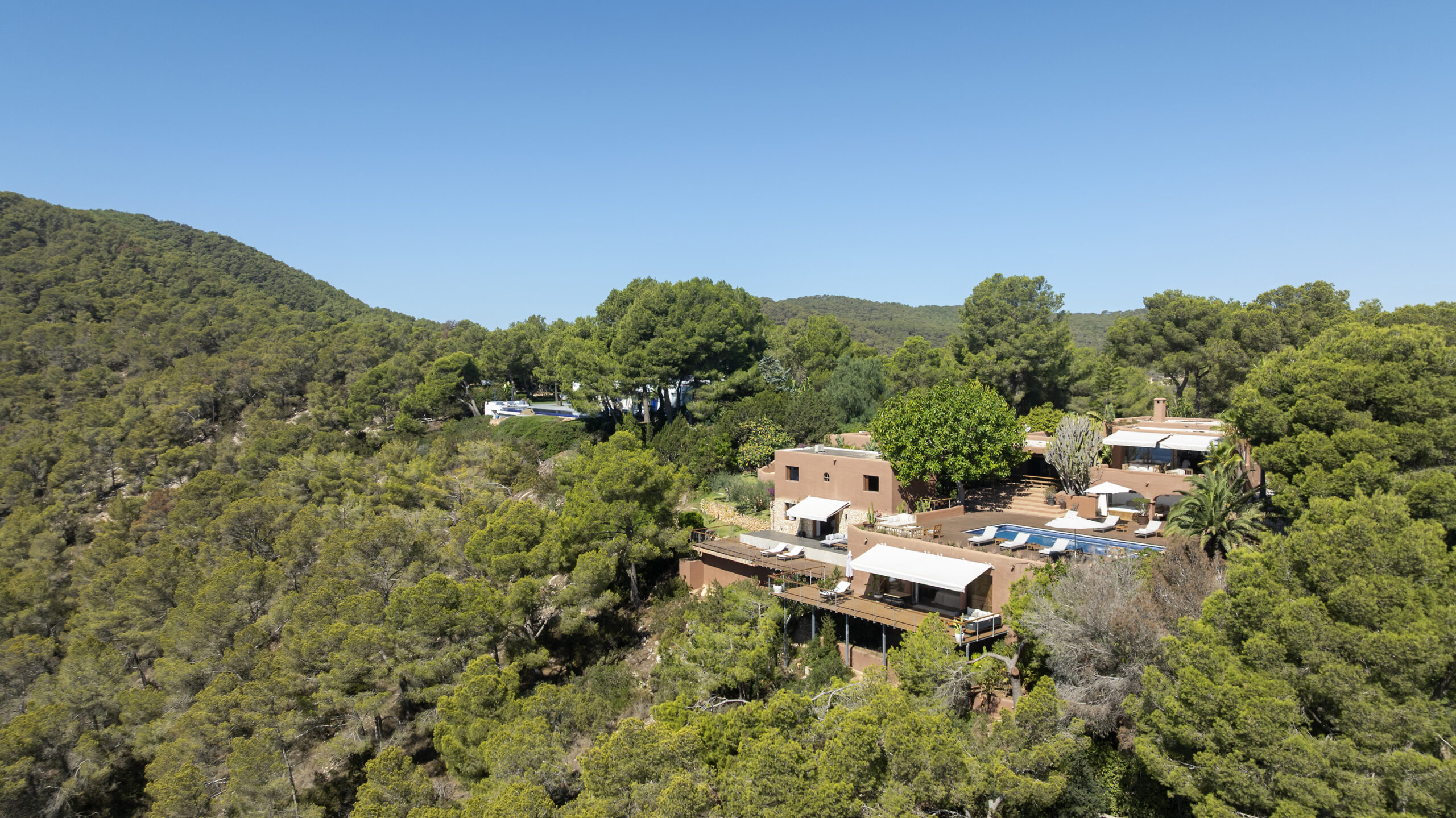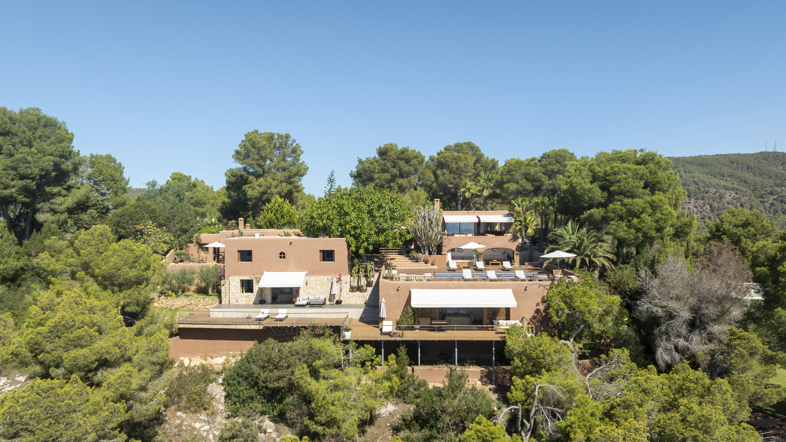 Set high on a pine-clad hillside just five minutes from Es Cubells, Casa del Sur frames the Mediterranean at its most cinematic. Across 750m² of carefully composed interiors and expansive outdoor living, spaces gaze out towards a 180-degree panorama of the sea.