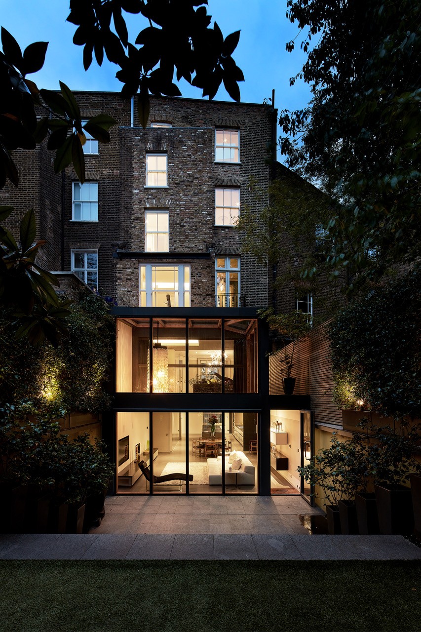 Demonstrating the home’s commitment to architectural excellence, the rear extension is configured as a bespoke mechanical structure which can be lowered into a basement pit – tailor-made for spring and summertime gatherings.