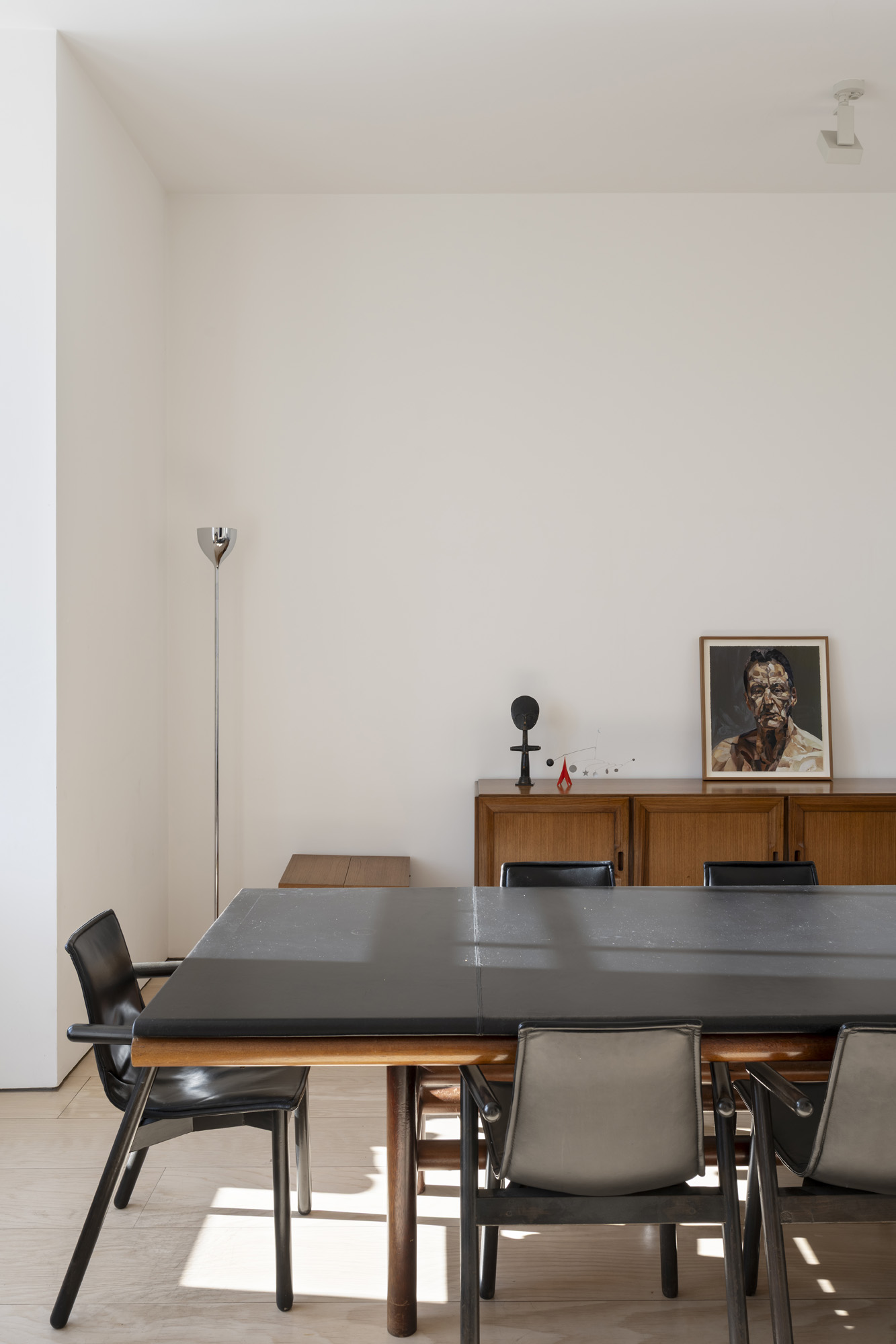 Cheyne Walk is one of Chelsea’s most culturally esteemed addresses – its long residential stretch replete with Blue Plaques of renowned painters, musicians and writers. Contained within Carlyle Mansions, one of several red-brick apartment buildings, lies an architectural paragon. First designed by John Pawson CBE, whose pre-eminent minimalism puts him in a league of his own, this four-bedroom home remains true to the influential artistic heritage of the street. Across its sweeping lateral footprint, spaces are expertly balanced with refined materials and luminous sunlight, resulting in a thoroughly serene setting for contemporary family life.