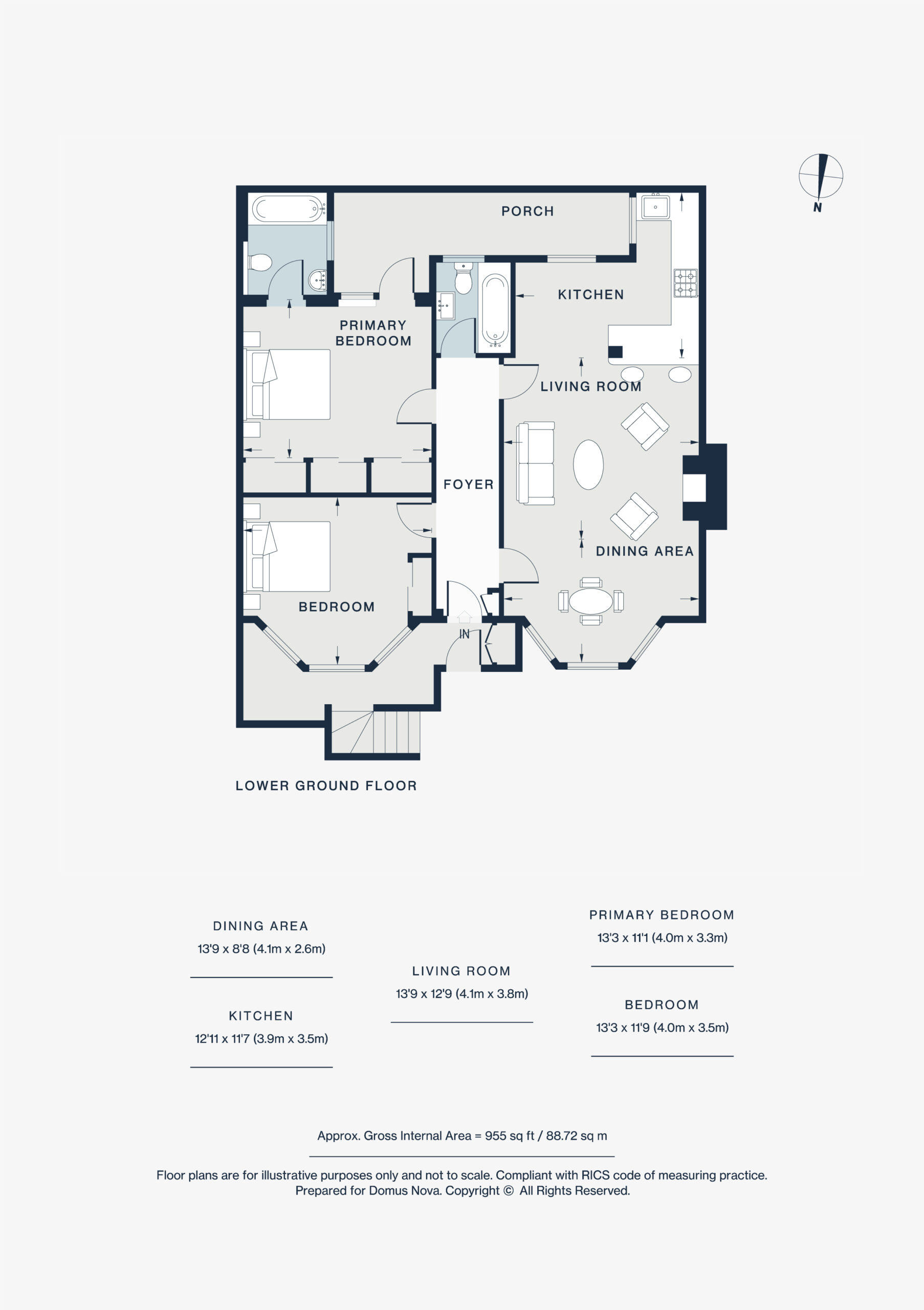 Approximate Gross Internal Area 955 sq ft / 88.72 sq m